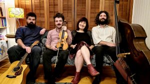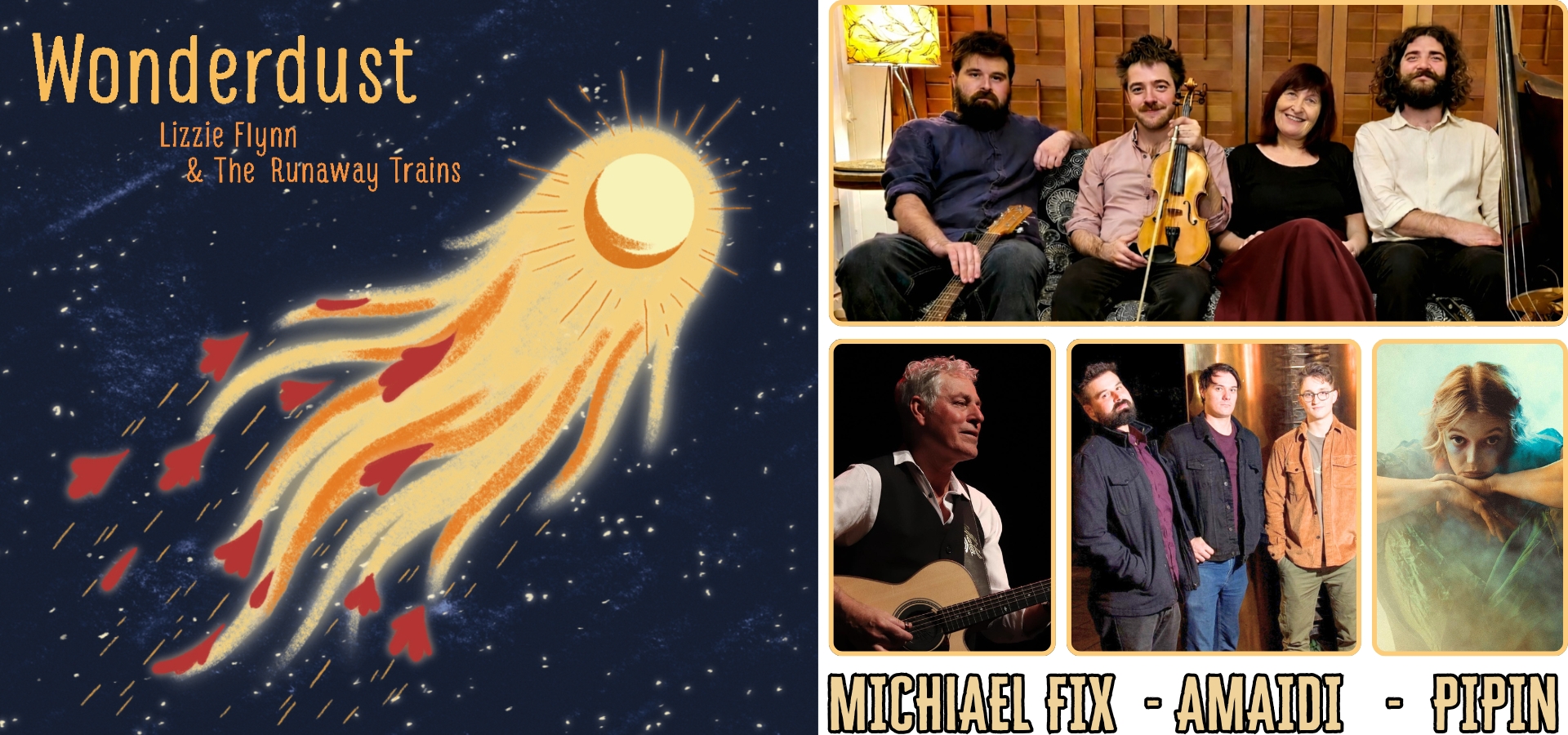 My latest musical project is Lizzie Flynn and The Runaway Trains with Gareth Mewes (violin), Benja King (double bass) and Sam De Santi (guitar, banjo, mandolin).