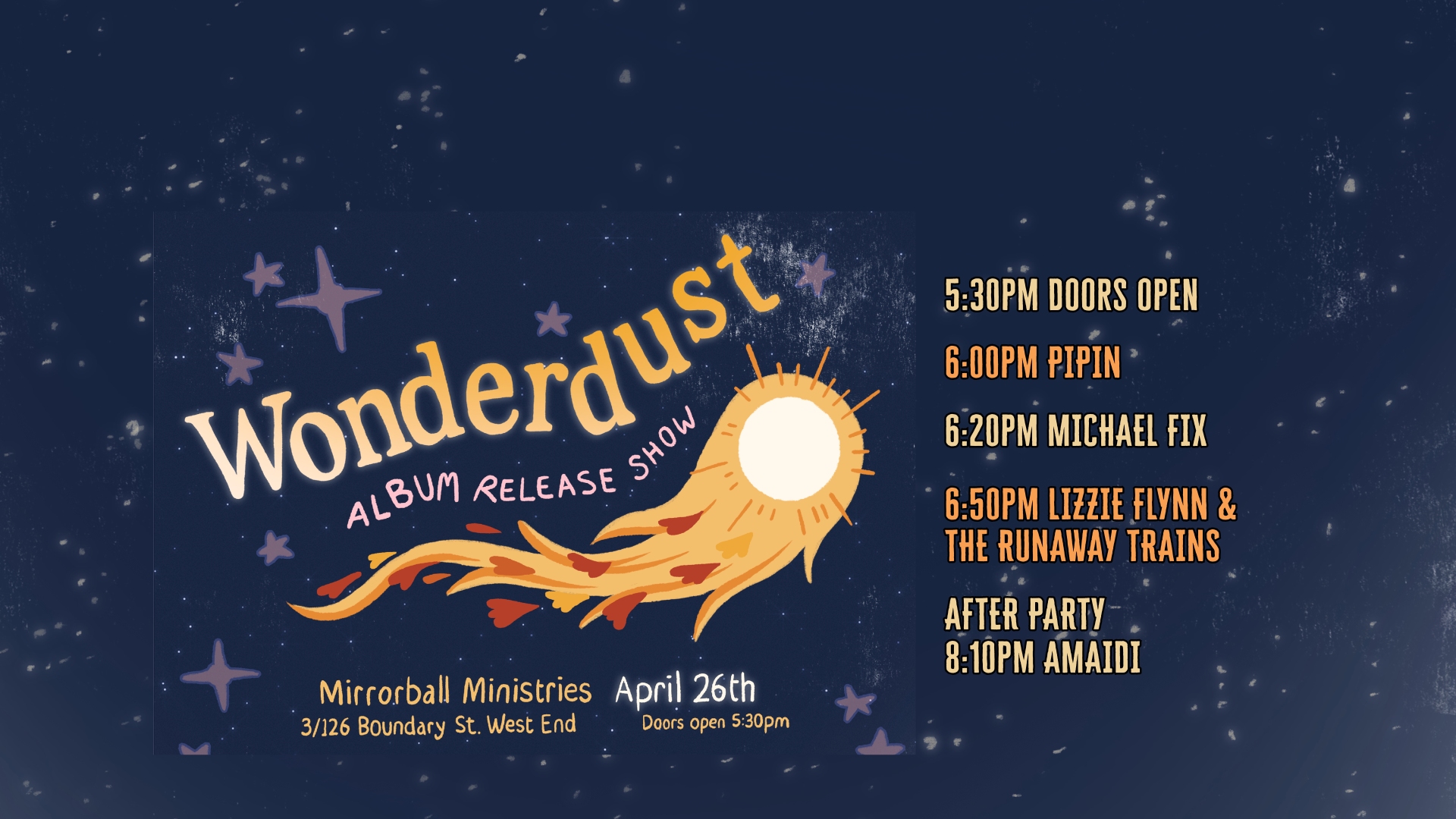 The new album with 10 tracks, Wonderdust, is finished and available from Bandcamp. A big launch event is planned for April. Details to come.